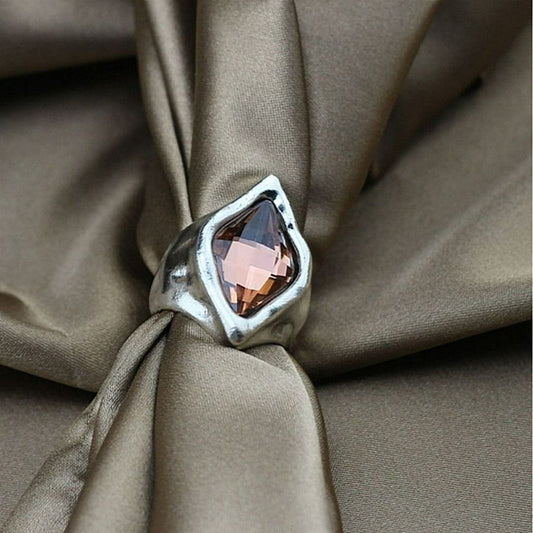 Zuri Cadance Silver Ring with Tourmaline Pink Color Crystal Mens Sz 8 Gift Boxed