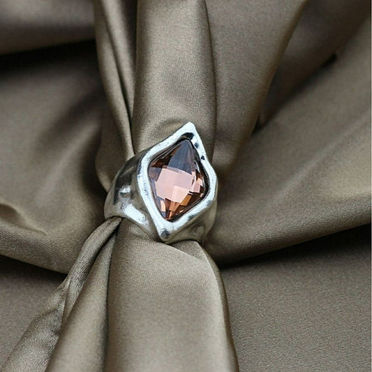Zuri Cadance Silver Ring with Tourmaline Pink Color Crystal Mens Sz 9 Gift Boxed