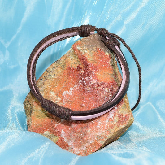 Skye Lane Hemp Accent Boho Tie Leather Bracelet Brown Pink Womens Gift Packaged