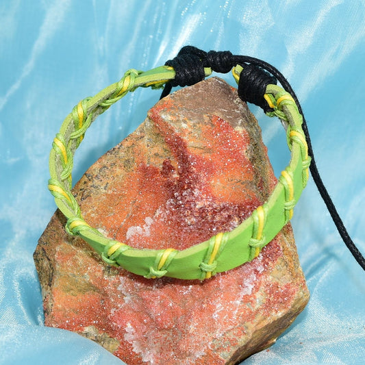 Malik Punch Weave Hemp Leather Bracelet Sweet Green Gift Packaged