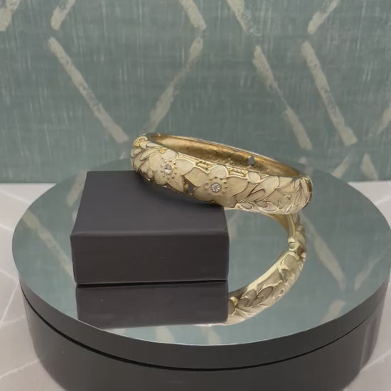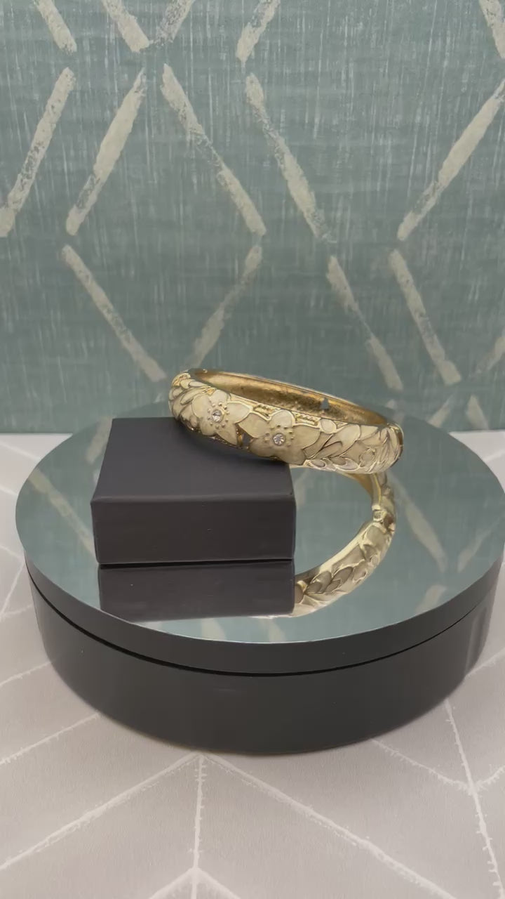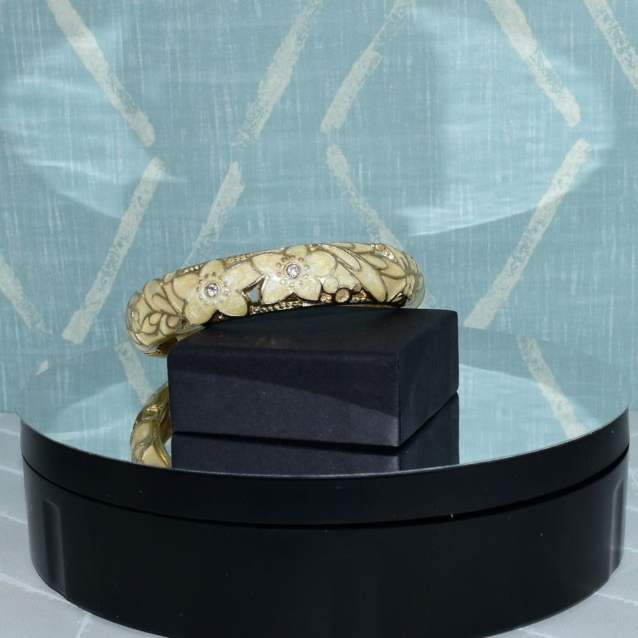 Artistic Pearlized Floral Enamel Hinged Bracelet Caroline C Estate Collection