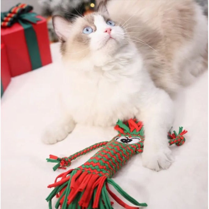 Get ready for endless fun and cuteness with the Bella Jaxony Cat Toy Set! This charming toy features a weaved exterior, playful fringed edges, and a classic squeaker, promising great entertainment for your feline friend. Each set includes two surprise toys, making it a delightful three-toy gift package.