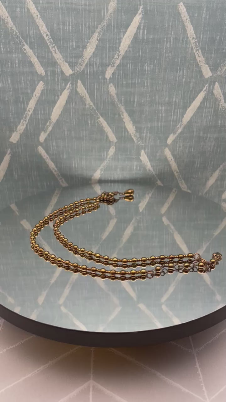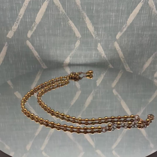 This estate collection necklace features a charming beaded style with a rhombus-shaped pendant in a dark gold to rich bronze color. It appears it may be artisan-made and possesses a vintage appeal. But it is engraved with a signature on a heart at the end of the extension.