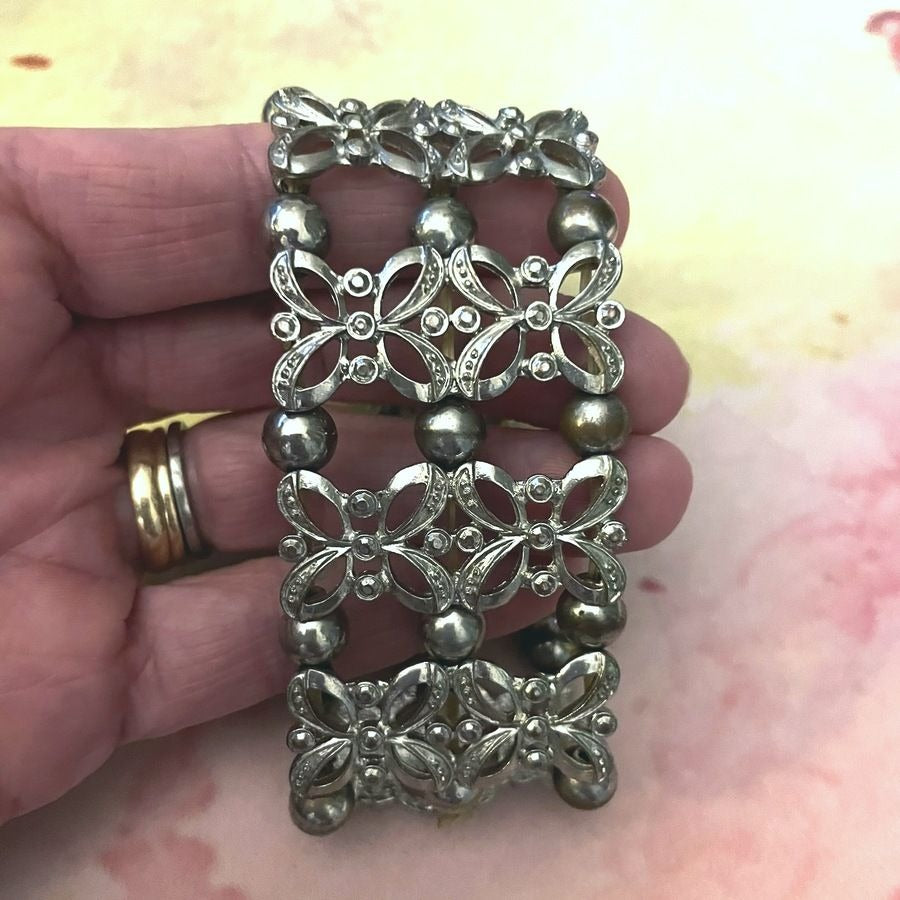Butterfly Beaded Aged Silver Tone Bracelet Caroline C Estate Collection Piece