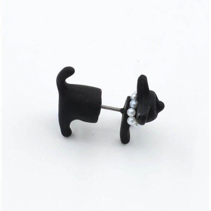 Deb Dee Dee Cutie Black Cat 3D Kitty Earrings Gift Packaged