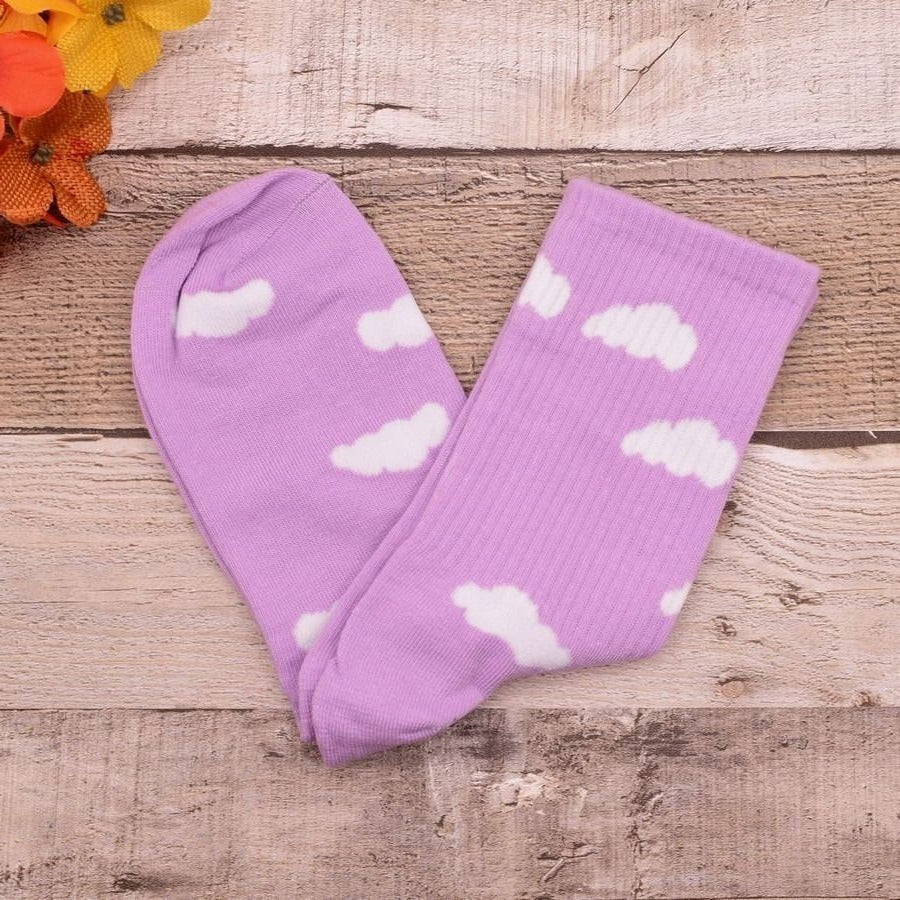 Sweet and fluffy cloud patterns bring smiles to these classic crew socks.