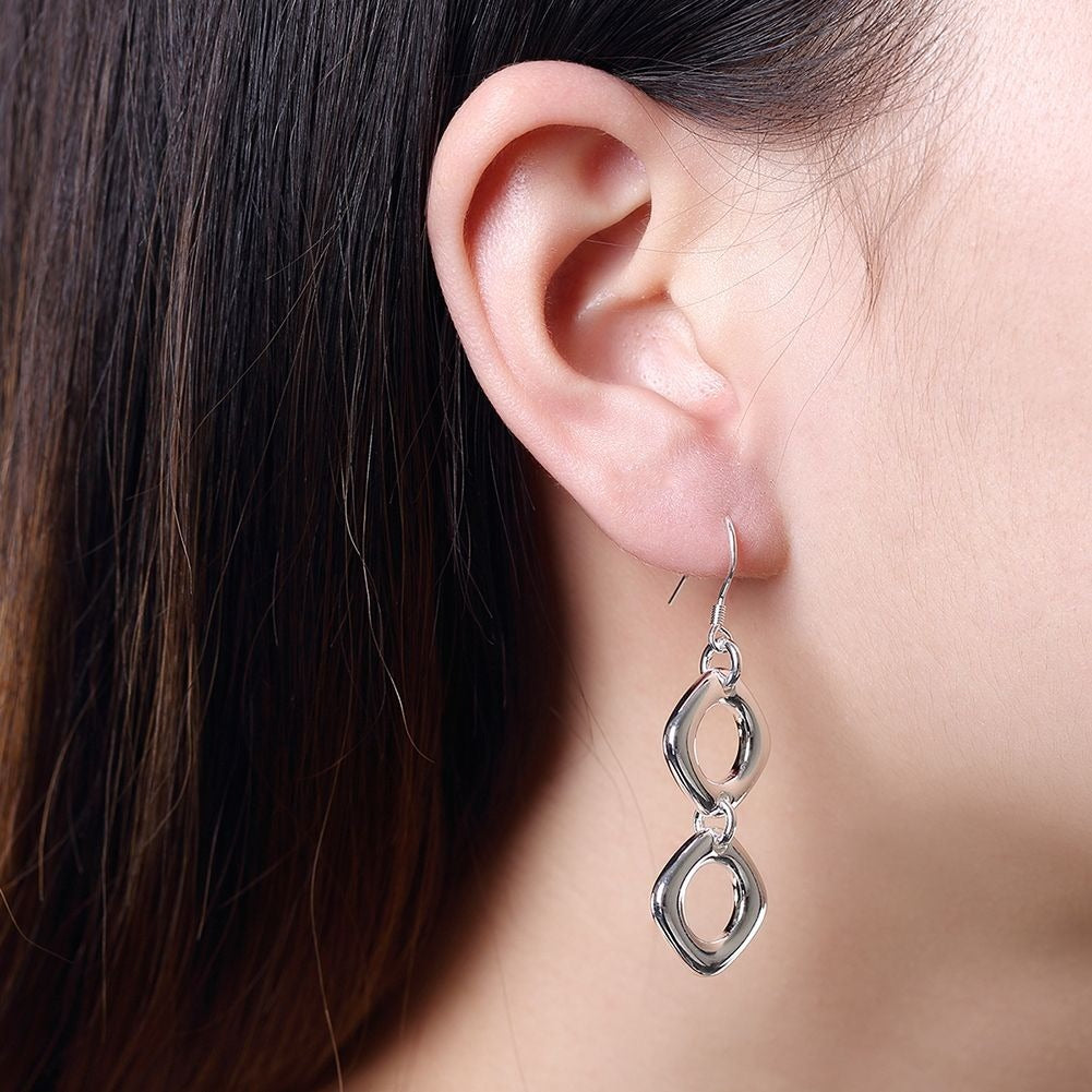 Leanna Geo Retro Open Square Double Drop 925 Sterling Silver Earrings Gift Boxed