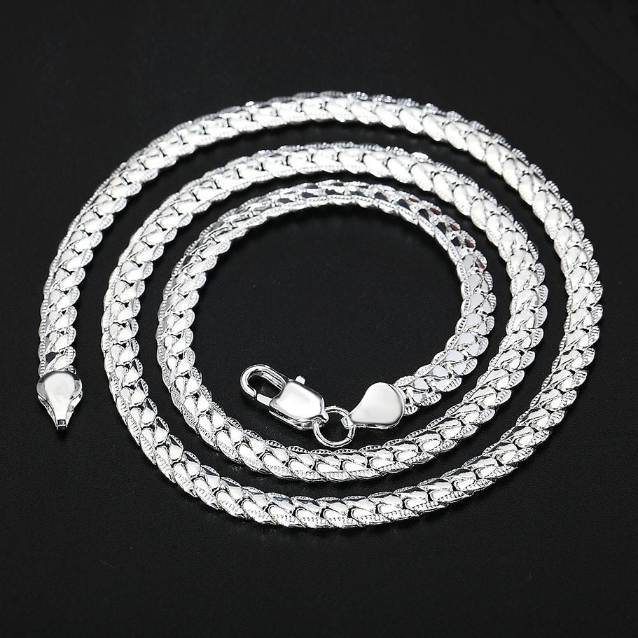 With a gorgeous scalloped edge that shimmers beautifully, this fabulous herringbone sterling silver chain necklace will be admired in any collection.