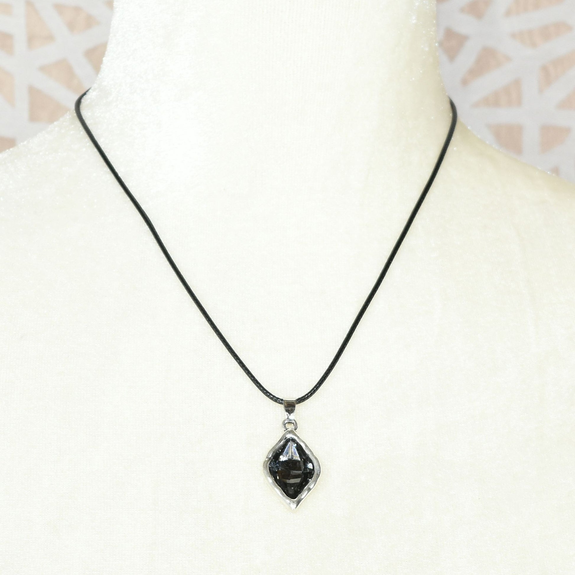 This enchanting pendant features a faceted rhombus-shaped crystal set in hammered silver-tone metal for an impressive piece that will be a favorite in any collection.