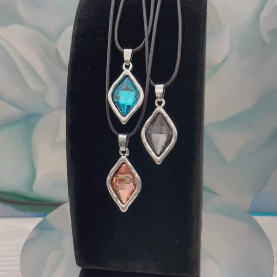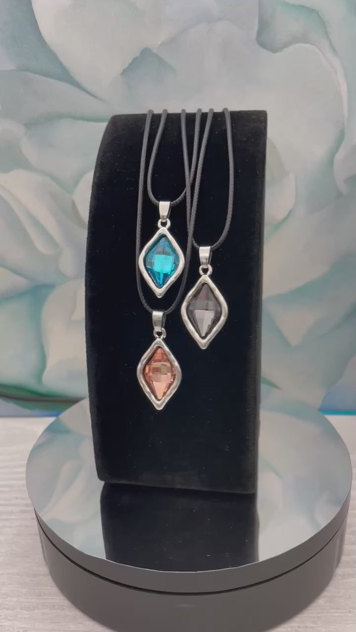 Lexie Topaz Blue Rhombus Crystal Charm Pendant Leather Necklace Gift Boxed