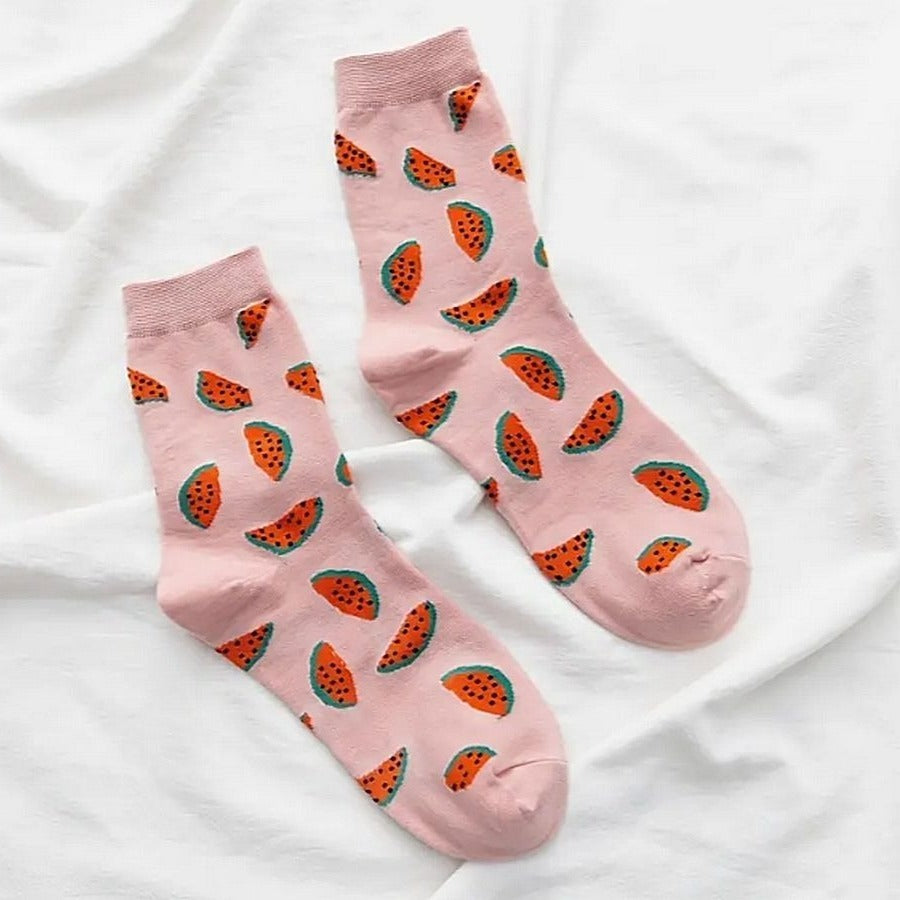 Talia Sweet Fruits Womens Crew Socks Pink Watermelon Red Gift Packaged